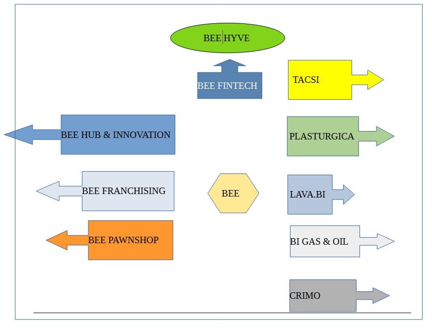 In pratica, oggi, BEE è una holding finanziaria confab-lab e hub di innovation-fab-lab orientato all’azione, alla produzione, gestione, trattamento e al commercio di materie prime, prime-seconde, seconde ( rifiuti ) utili all’ ambiente, con capitale privato personale dei soci che opera concretamente nell’ interesse delle proprie aziende e soci, come network, con piattaforma software-finanziaria, tecnologica , e gruppo IVA delle società a sé collegate.